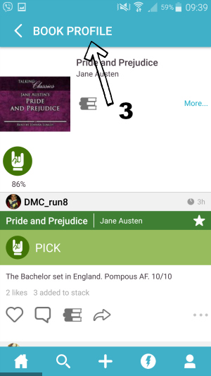 Kada ste jednom pofollowali sve ljude koji vam se za početak čine interesantni, stisnete “Done” i dolazite na app timeline koji će svim Instagram korisnicima biti dobro poznat. Skrolajući možete pregledavati objave svih onih ljudi i stranica koje pratite. S tog timelinea možete kliknuti na korisnika i pogledati sve njegove objave (1), ili možete kliknuti na naslov knjige koje se objava tiče (2), što će vas odvesti na profil knjige (3) – tamo možete vidjeti sve objave koje su korisnici vezivali uz ovaj naslov. U ovome je Litsy sličan Goodreadsu.