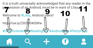 Litsy nam nudi tri različite vrste objava: REVIEW – možemo napisati kratki (imamo na raspolaganju 300 znakova) osvrt na knjigu, BLURB – napisati kratki komentar ili mišljenje o bilo čemu vezanome uz knjige i čitanje (nešto što najviše nalikuje komunikaciji na Twitteru) i, konačno, QUOTE – citat iz neke knjige uz koji se može prikačiti i fotka. Hashtagovi, naravno, funkcioniraju kao i na Instagramu.:)