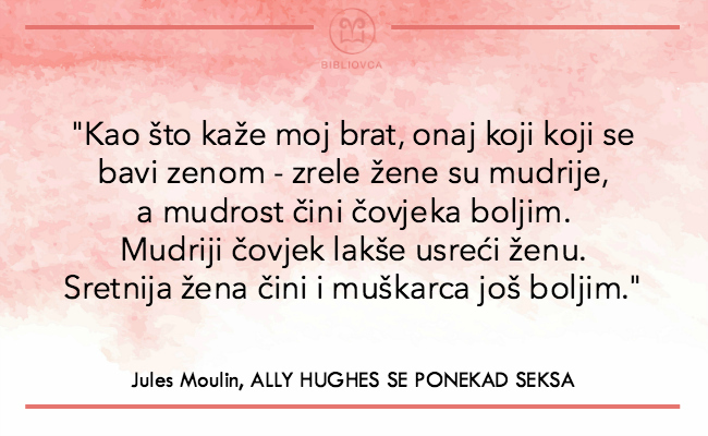 Znate kako nas nekada uhvati želja za nekakvim laganim štivom koje opušta i rasterećuje, ali ne zaglupljuje? Evo je, ljudi, to je ta! Skrojena baš za takve čitateljske potrebe! 🙂 Idealna kao poklon frendicama, ako ste bez ideja. Ako su frendice još uz to starije od 40 godina – jackpot! 🙂