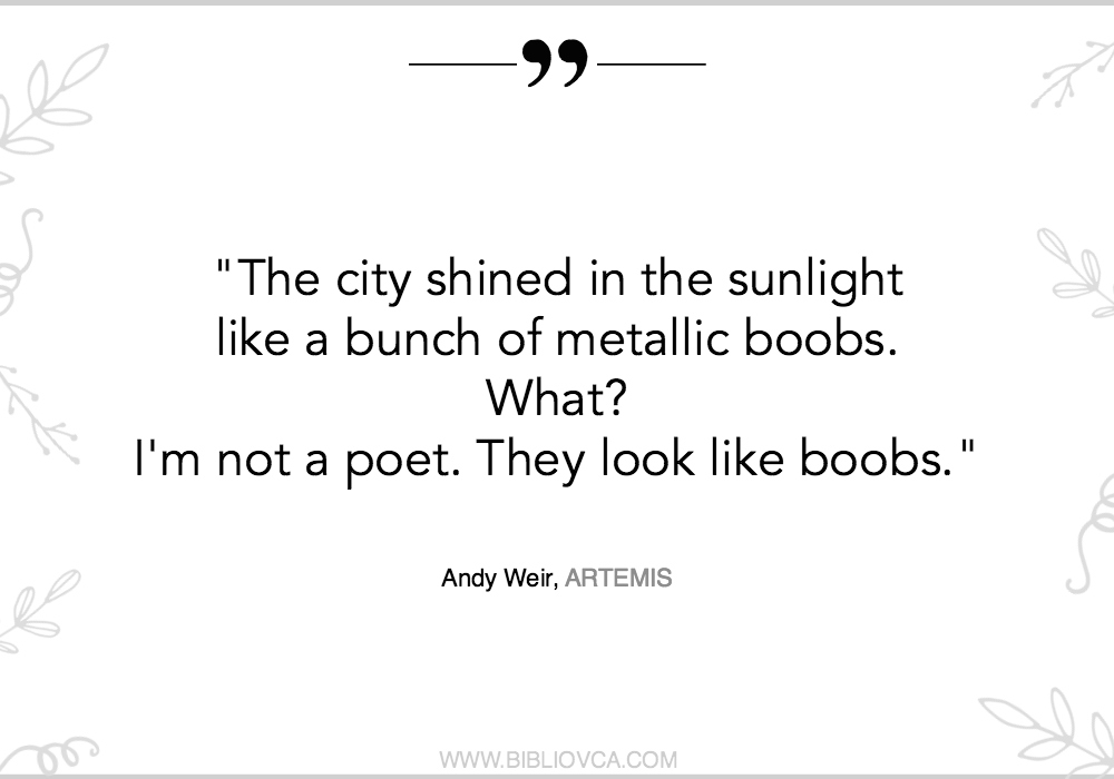 Ako sam se ičemu veselila u novoj knjizi, veselila sam se novom genijalnom protagonistu i nadala sam se da će ga autor obilno obdariti istim onim smislom za humor kojim je obdario i Marka Watneya. I tu me Andy Weir nije razočarao – da je Jazz nekim slučajem zaglavila na Marsu s Watneyem, mislim da bi me čeljust bolila od smijeha. 🙂