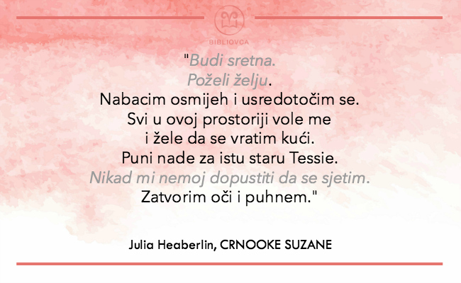 Nikada ne bih rekla da je Juliji Heaberlin ovo prva knjiga. Nisam ljubitelj ovog žanra, no knjige poput ove me natjeraju da se dobro zamislim nad time koliko propuštam.