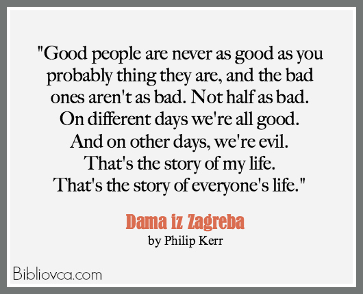 Wow! Kakva knjiga, kakvi likovi! Uzbudljivo, sexy, intrigantno, poučno, povijesno, vješto su samo neki od epiteta koje bih mogla pokloniti ovoj knjizi. Iskreno, ovo je prvi roman od Philip Kerra kojeg sam imala priliku čitati (definitivno ne zadnji) i prvi o Bernie Guntheru. Naime, ovo je deseti roman o tom detektivu, vojnom licu i iskrenom čovjeku, koji se nikako ne uklapa u godine kada vladaju Nacisti (koje Gunther prezire), no ono što je najintrigantnije o njemu je što on u takvom okruženju uspijeva preživjeti. On je pametan, elokventan, snalažljiv, šarmantan i ono najbitnije, ne predstavlja prijetnju. Bar zasad. Čovjek ga jednostavno ne može ne voljeti! Bar meni to nije pošlo za rukom.