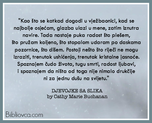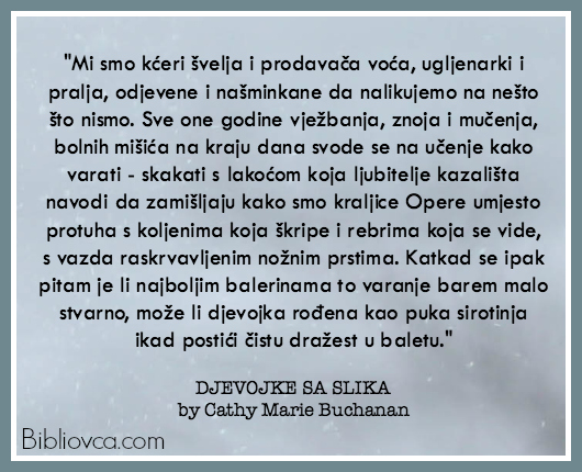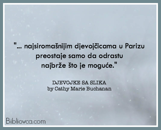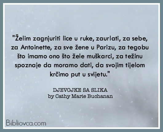 I sada, godinama kasnije, Cathy Marie Buchanan uspjela je svojom knjigom “Djevojke sa slika” ponovno oživjeti taj dio moje čitalačke duše koji se divi onome tko stvarno stanje i (ne)prilike običnog čovjeka umije tako vjerno prikazati, bez zazora pred teškim temama.