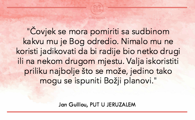 Većim dijelom knjiga mi se svidjela, s užitkom sam je čitala. No, kraj me razljutio, iako sam znala što će se dogoditi. Po prvi puta susrela sam neke istinski odvratne likove. Knjiga bi mogla razočarati one koji u njoj očekuju život i borbe vitezova templara (to je radnja druge knjige). Naziv “Put u Jeruzalem” ne odgovara sadržaju knjige; možda jedino alegorijski kao Arnov put sazrijevanja da bi postao vitez templar.