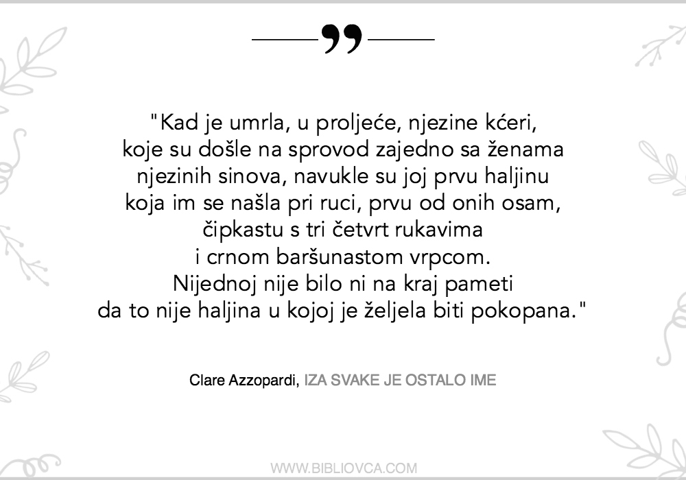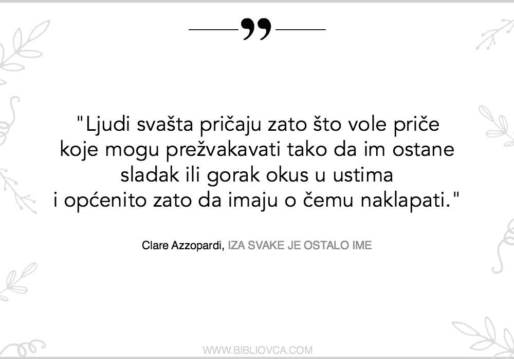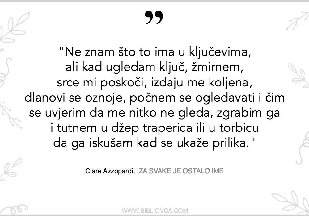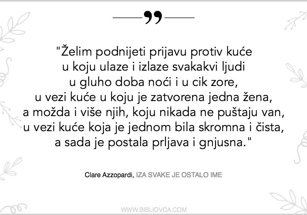 No, dok Valentovi junaci poput sjena prolaze svijetom, šapćući svoje priče o izolaciji, žene koje je na stranicama svoje knjige izmaštala Clare Azzopardi pred čitateljem kao da ponosno pokazuju sve svoje ekscentričnosti. Nekako nam, upravo zbog onih bitnih detalja koji mirišu univerzalne preokupacije svakoga od nas, zbog te svoje ekscentričnosti (ili unatoč njoj) ove žene postaju jako drage, jako bliske.