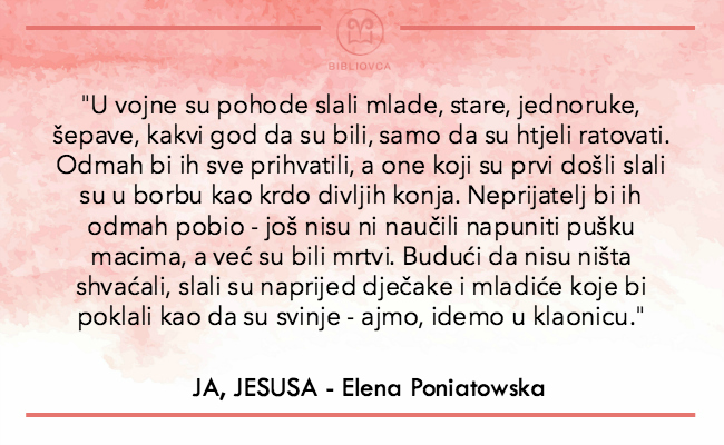 “Ja, Jesusa” je posebno djelo koje se najbolje razumije ako se čovjek potrudi saznati više o samoj Eleni Poniatowskoj, o ženama u meksičkoj civilnoj i vojnoj povijesti te Eleninoj odanosti svima onima koji su potlačeni, obespravljeni, osiromašeni. To su najčešće, iako ne isključivo, bile uglavnom žene.