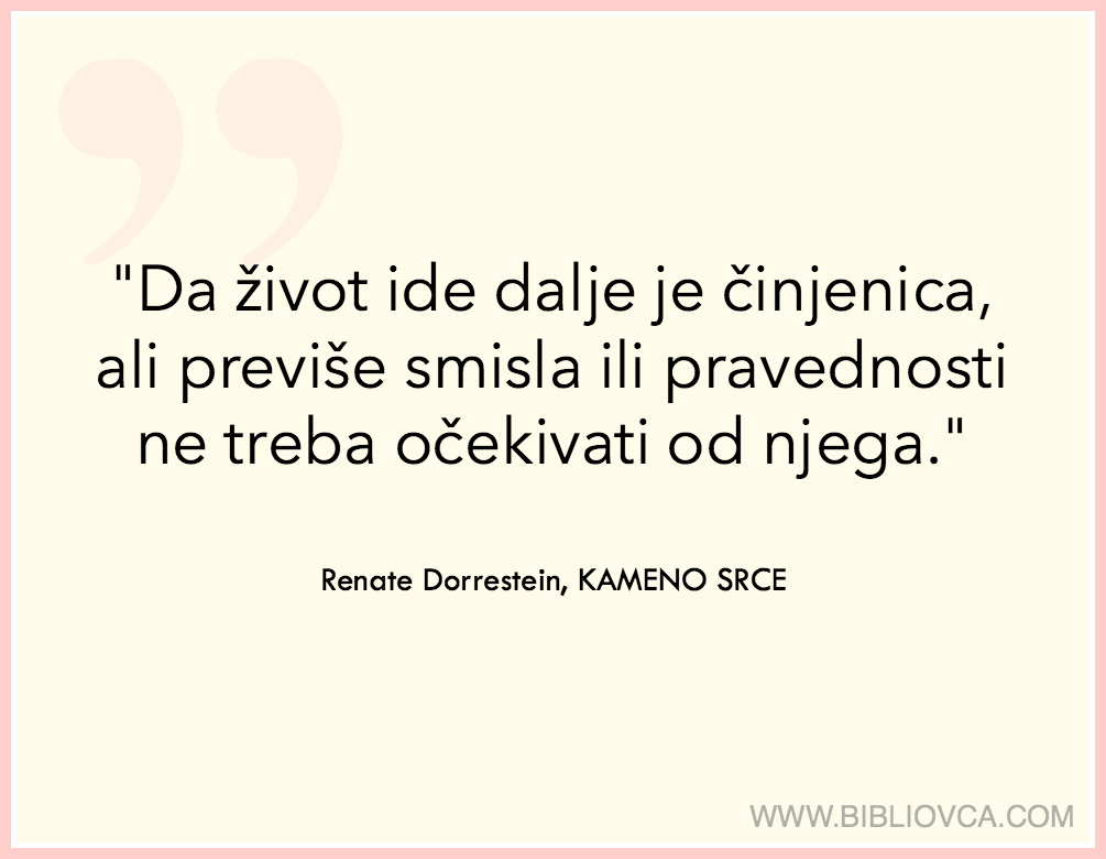 Treće, najčešće ovakve knjige načnu toliko tema o kojima bih voljela pisati i s vama raspravljati, da bih, da se posvetim svakoj onoliko koliko želim, mogla započeti pisati zaseban blog za svaku knjigu. Tako bi, recimo, postojao samo “Dah koji život znači” blog, “Kameno srce” blog, “Evanesco” blog, “Hausfrau” blog… To ne vodi nikamo.