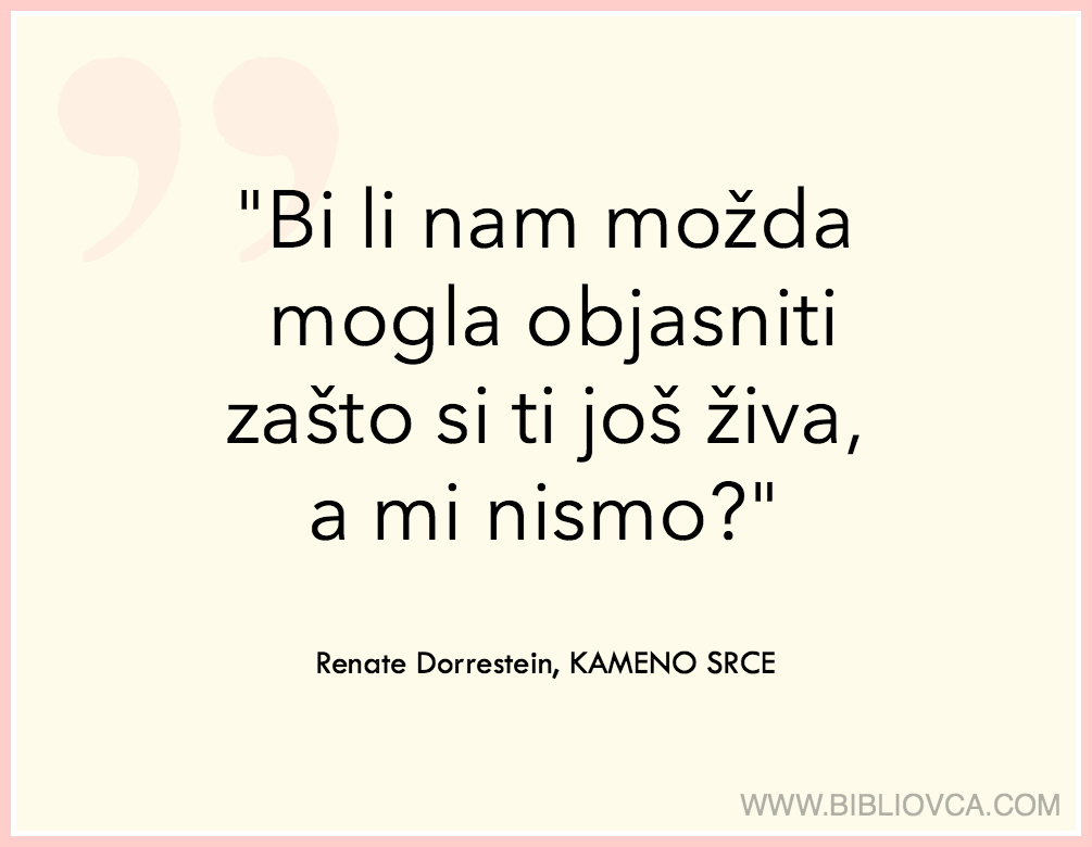 Jedino još traga za odgovorom na pitanje – zbog čega njezino ime nije među imenima članova njezine obitelji? A kada jednom sazna odgovor – i to na zadnjoj stranici knjige – njezino srce, kao i srce samog čitatelja (oba već dobrano izmučena do tada), bit će silovito iščupano iz grudi.