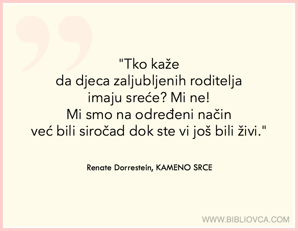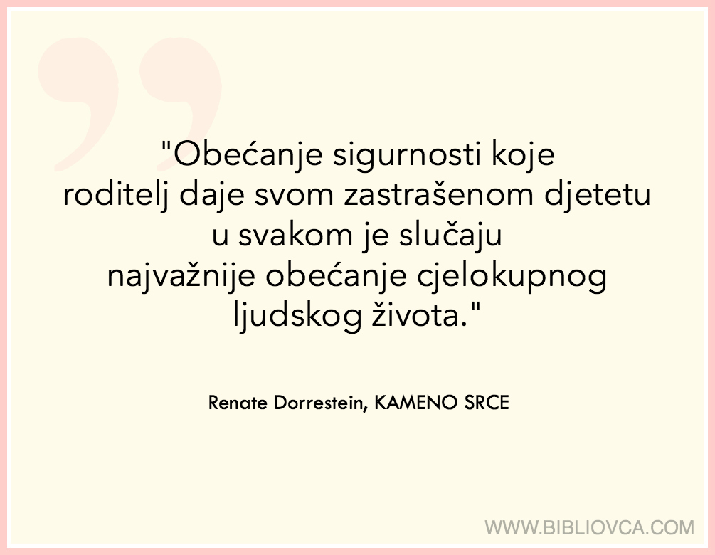 Bespomoćnost djeteta u konstelaciji obiteljskih odnosa Renate Dorrestein ne pokazuje samo sudbinom koju namjenjuje svojim likovima (niti ispunjenim i praznim mjestima na nadgrobnom spomeniku u obliku srca). Spisateljski vješto je pokazuje kroz sirove emocije djevojčice-Ellen i žene-Ellen.