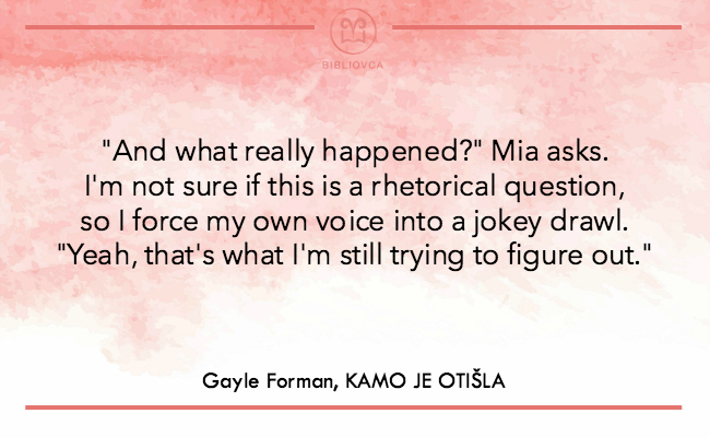 Iznenadila sam se zapravo svojom reakcijom na Miu. Obožavala sam to dijete u prvoj knjizi, no njezino ponašanje i njezine riječi u ovoj knjizi su me pomalo izluđivale. Nisam je mogla razumjeti – čak ni uz dano objašnjenje je nisam mogla razumjeti. Dobro, možda malo. Možda sam razumjela njezine osjećaje i njezine potrebe, no nisam razumjela njezine postupke. Kako bilo, drame je negdje moralo biti kako bi uopće imalo smisla pisati nastavak. 😀 A šteta bi bilo ne dati ljudima nastavak, kada nas je prva knjiga tako osvojila. 🙂 I mislim da je autorica napravila pravi potez time što je nastavku dala Adamov glas. Da je ovu priču pričala Mia, možda bi nam neke stvari bile jasnije puno ranije, ali odnos s Adamom ne bi dobio ovu dubinu, ovaj osjećaj sudbinske neraskidivosti njihove veze.