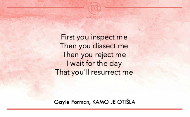 Drago mi je da sam čitala na engleskom. Mislim da tekstovi pjesama – odnosno pojedini ulomci pjesama koje donosi autorica – puno bolje zvuče u originalu, puno snažnije pogađaju u svojoj originalnoj formi.