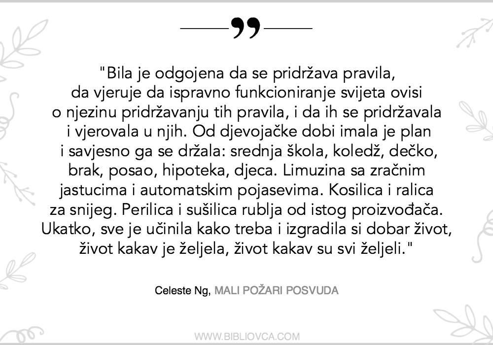 Mislim da je Celeste Ng, namjerno ili nenamjerno, TAJ dio priče odradila bolje nego sav onaj kaos oko teme koja se tek čini kao primarna u ovoj knjizi. 🙂