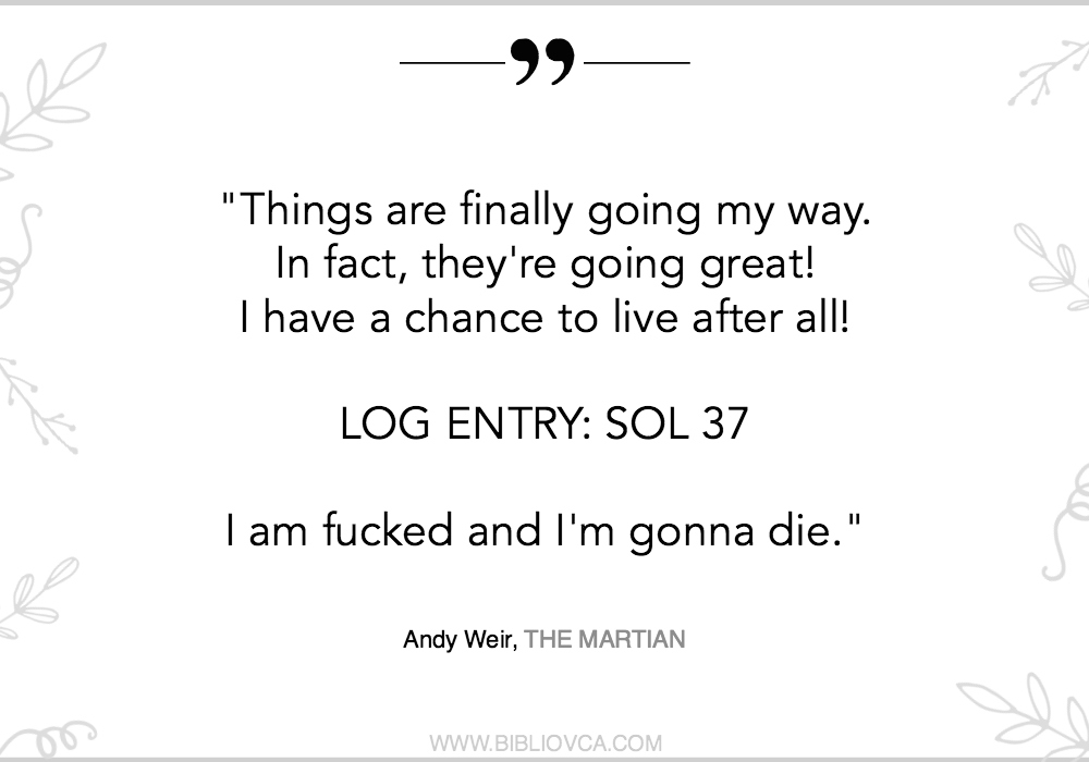 Čim otvorite prvu stranicu, knjiga vas usisa i baci na strm toboggan nepredvidljivih zbivanja i zapleta na kojem ste prvo šokirani, a onda ne želite sići jer vas malo morbidno zanima gdje ćete završiti. Zapravo, gdje će Mark Watney završiti.