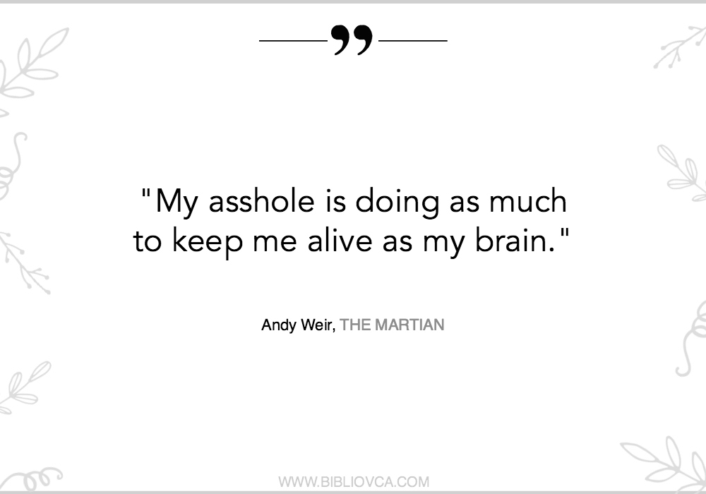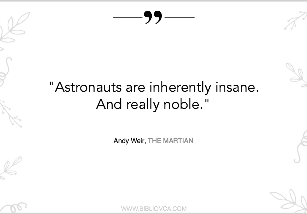 Nemam namjeru biti bezobrazna, ali knjiga je prava poslastica za najokorjelije ljubitelje znanosti i znanstvene fantastike. Krcata je tehničkim detaljima, opisima prirodnih procesa i fenomena – od kemije, fizike, botanike, klimatologije – i sve to na “astro” potenciju. Prosječnoj čitateljici romansi bi definitivno bila malo previše… No, Mark Watney je duša od čovjeka i tako lijepo sve objašnjava nama laicima da možemo bez ikakvih problema u detalje pratiti njegove neprilike.