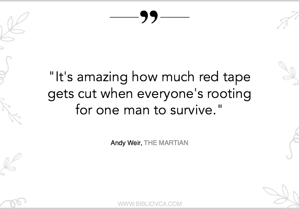 “Zasluženo” je isto vrlo prigodno reći. Knjiga oduševljava. Mark Watney je lik kojeg se lako zavoli i s kojim se još lakše suosjeća; strahovito pametan dečko s neiscrpnim smislom za humor koji se, kako stoji u službenom psihološkom profilu stručnjaka iz NASA-e, samo razgrana kada je Mark pod stresom. A Mark JEST pod stresom.