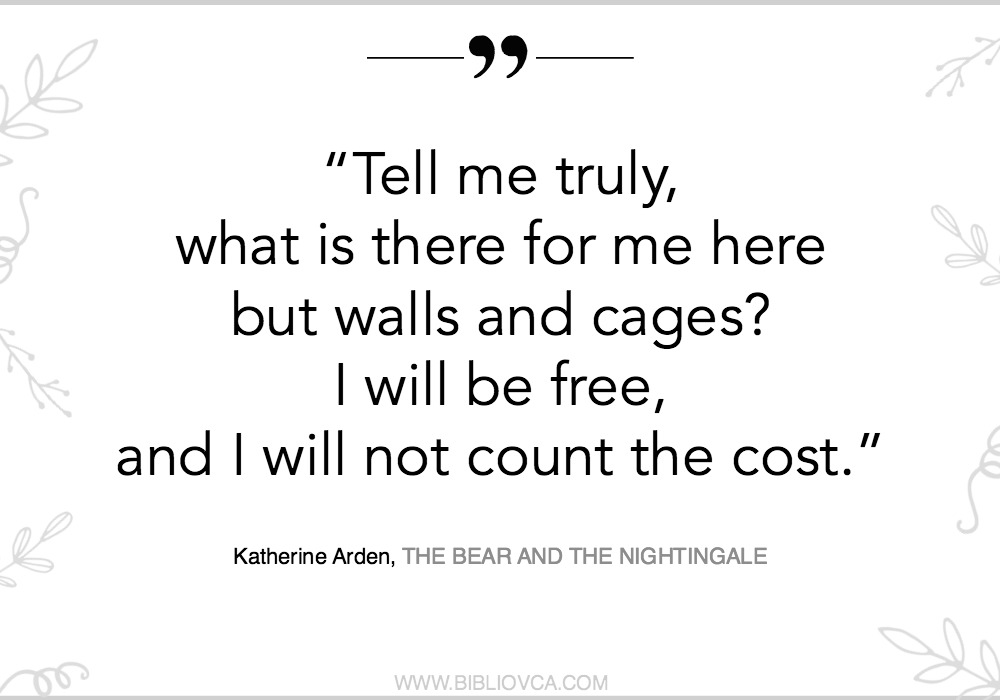 “All my life”, she said, ‘I have been told ‘go’ and ‘come.’ I am told how I will live, and I am told how I must die. I must be a man’s servant and a mare for his pleasure, or I must hide myself behind walls and surrender my flesh to a cold, silent god. I would walk into the jaws of hell itself, if it were a path of my own choosing. I would rather die tomorrow in the forest than live a hundred years of the life appointed me.”