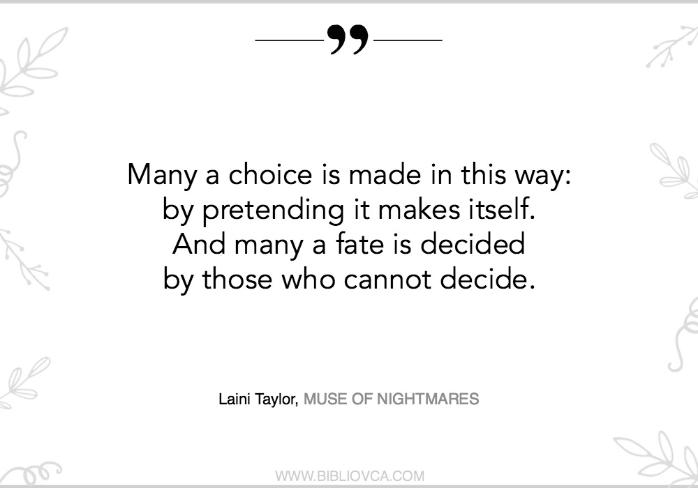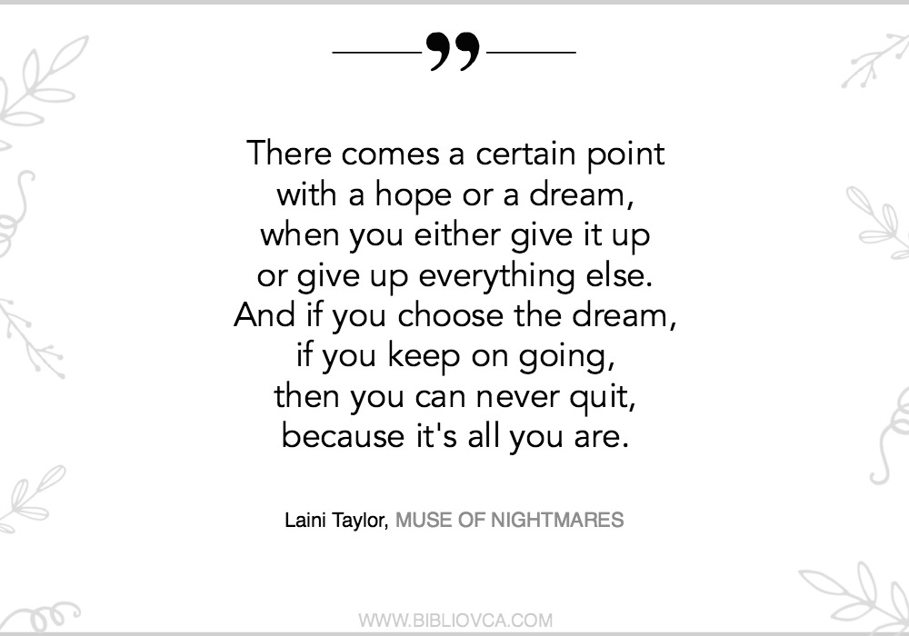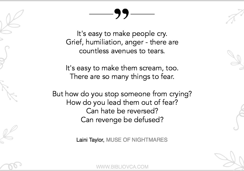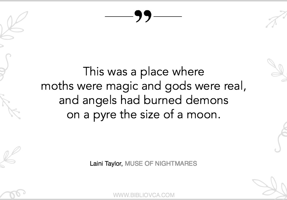 Ako nekome još nije jasno što pokušavam reći o knjizi “Muza košmara”, napisat ću najjednostavnije što mogu – ova knjiga je još bolja, nevjerojatnije, uzbudljivija, fantastičnija nego prva, “Sanjar Strange”. I odbijam vjerovati da je posljednja u ovom serijalu… A ako i jest… Hah, kad pročitate, shvatit ćete kakav prostor za pripovijedanje je za sebe stvorila pametna, divna, nevjerojatna Laini Taylor.