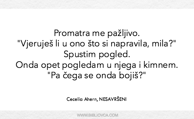 Svi oni koji su voljeli knjige za odrasle koje je do sada pisala Cecelia Ahern voljet će i ovu njezinu knjigu. Volim pozornost koju ona posvećuje detaljima kada piše o složenim osjećajima i odnosima među svojim likovima.