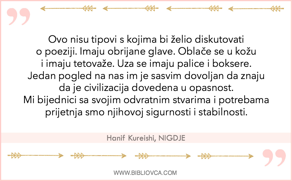 Nisam do sada čitala Kureishija, ali vam mogu reći, dok sam čitala o njemu malo, što se o njemu kao piscu priča. Zapravo, ako se mora, sve bi se dalo svesti na na ovakav jedan opis: Hanif Kureishi je pisac koji ima vrlo precizno ugođenu žicu za pisanje britke fikcije o škakljivim suvremenim temama.
