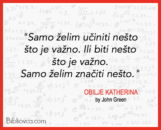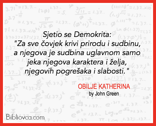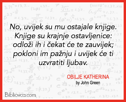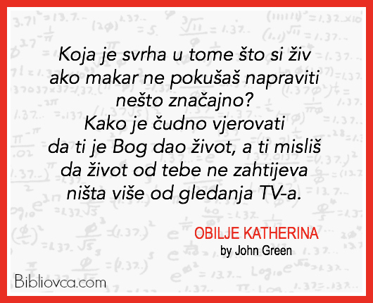 Mislim da je to to od knjiga koje je Green sam pisao. Ostaje još “Will Grayson, Will Grayson”, koju je pisao zajedno sa Davidom Levithanom te niz kratkih priča koje su objavljivane kao dio nekih drugih zbirki. Prošlo je četiri godine od objave “Greške u našim zvijezdama”. Je li krajnje vrijeme da od njega vidimo i nešto novo? I zbog čega pauzira ovoliko? Da nismo mi svi Colin, a on nekakva Katherine koja će nas, na kraju, ostaviti? 😉 Nema veze, ostavlja nas u društvu svojih knjiga, od kojih je barem jedna genijalna.