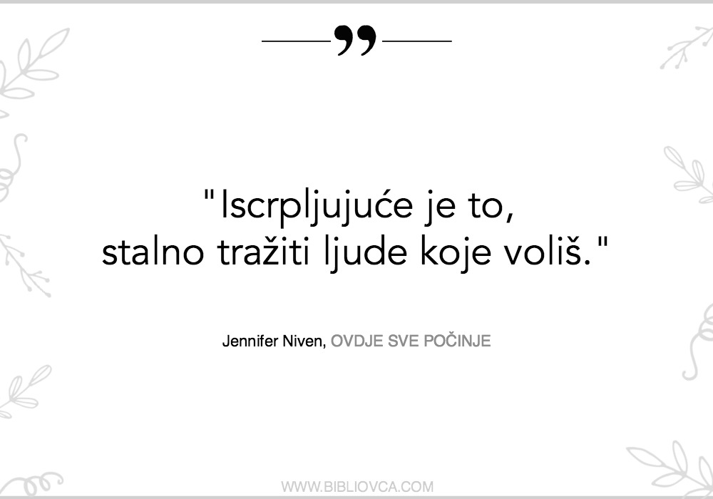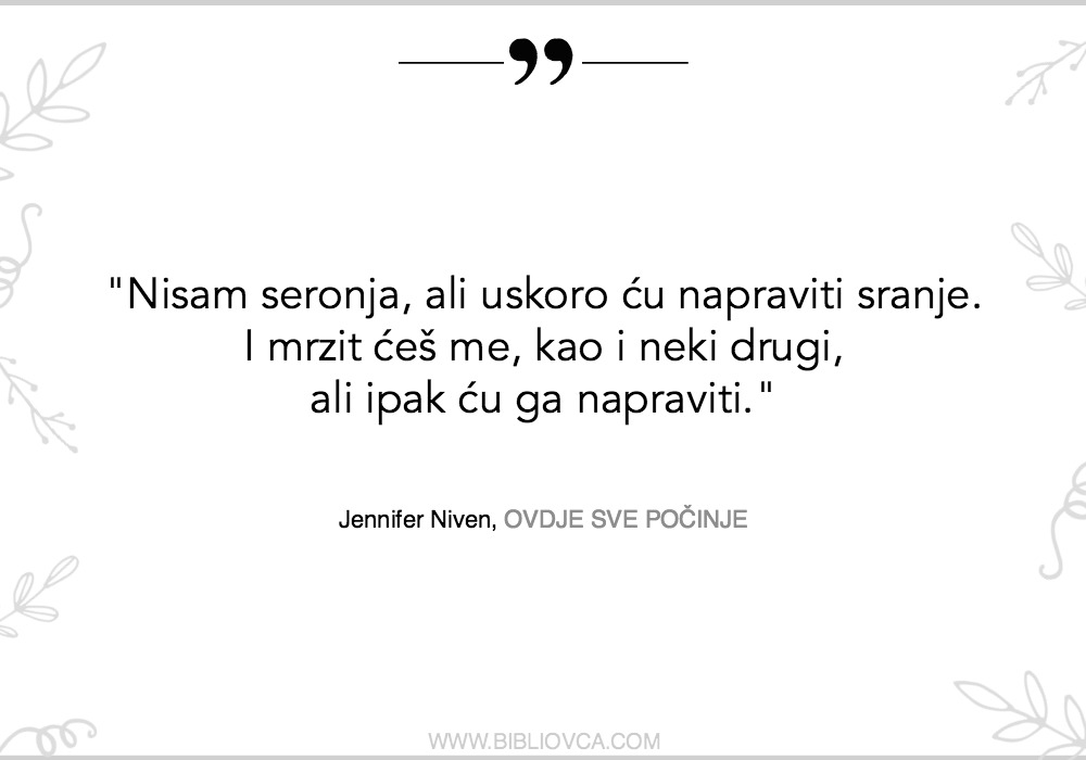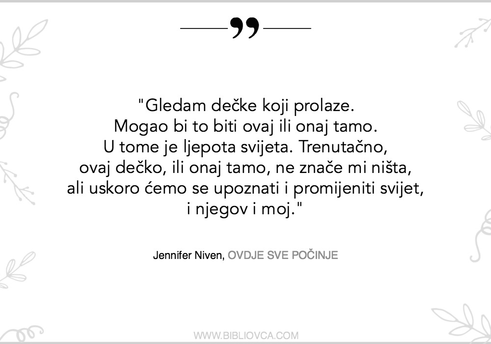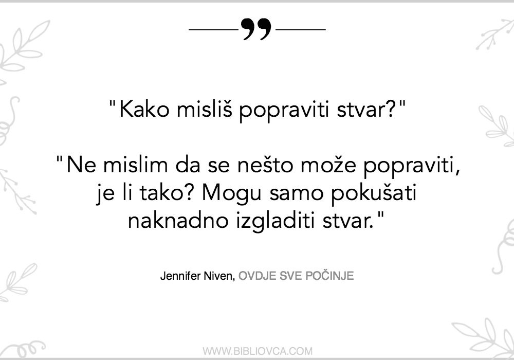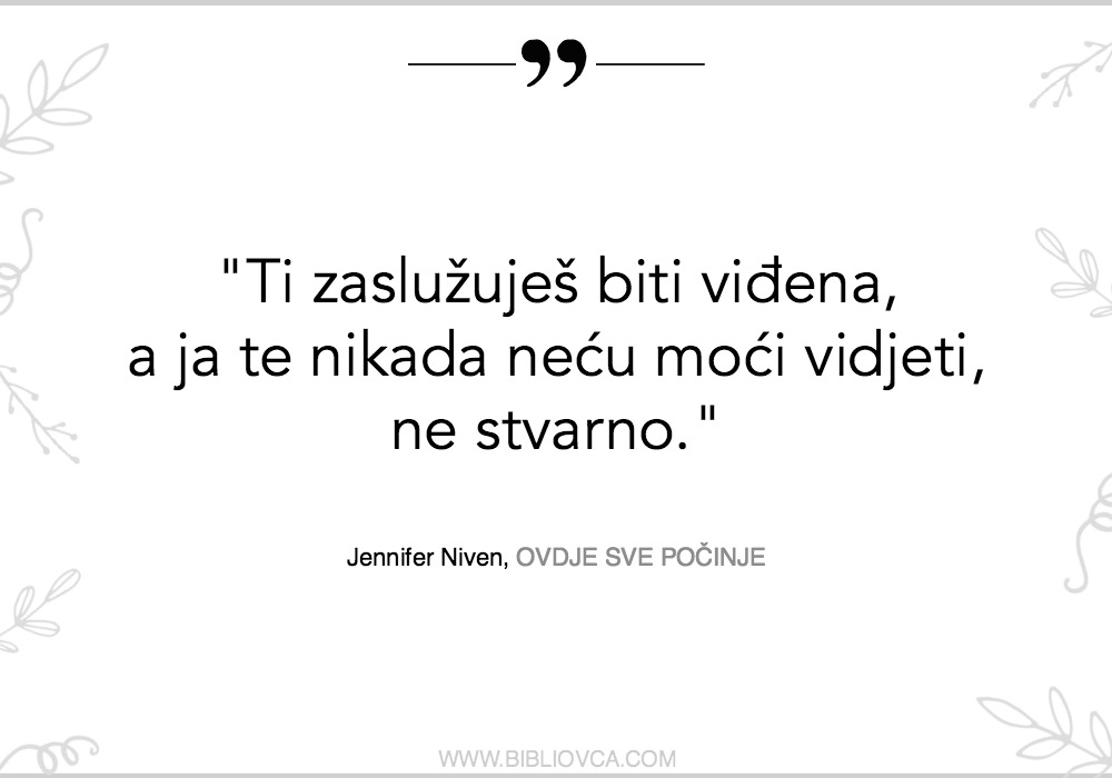 Prva knjiga autorice Jennifer Niven, “Sva radosna mjesta”, toliko mi se svidjela kao new-adult štivo da sam imala visoka očekivanja kada jednom osvane i drugi roman. Mislim, kada publika s toliko oduševljenja primi tvoju prvu knjigu, jasno je da slijedi i druga, prije ili kasnije.