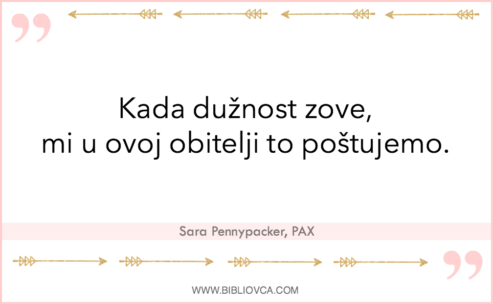 Za mene je ova knjiga bila potresan podsjetnik na ulogu roditelja, na ulogu odgajatelja. Željela bih da moje dijete – i da sva naša djeca – budu ljudi puno hrabriji i puno poduzetniji kada je očuvanje mira i njihovog blagostanja u pitanju nego što smo mi jesmo danas.