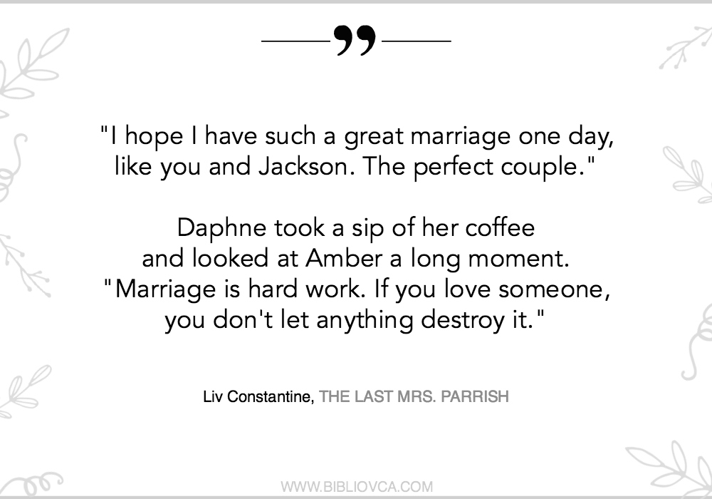 Liv Constantine je ime pod kojim pišu dvije sestre, Lynne i Valerie Constantine, kojima je “Posljednja gospođa Parrish” prva knjiga, i već u prvoj knjizi uspjele su zakuhati takve likove i takve obrate, da se knjiga čita sama od sebe, u jednom ili dva sjedenja.