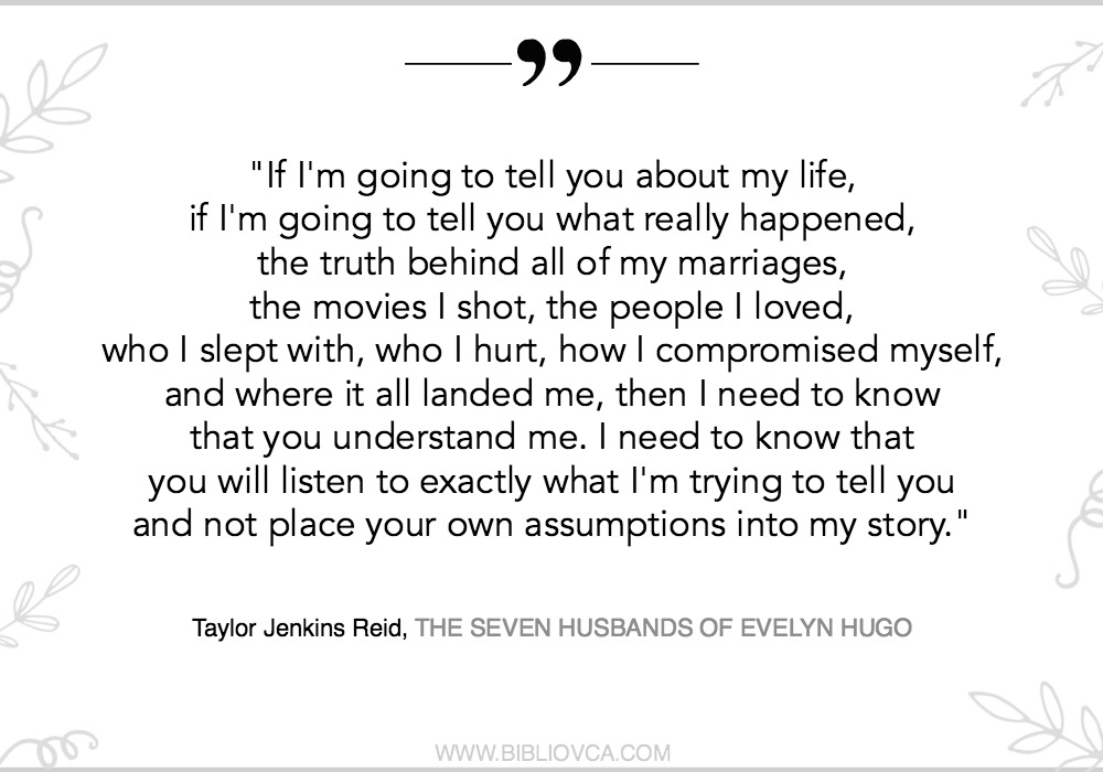 Znate zašto želim da čitate ovu knjigu? Jer vam treba žena – prijateljica, mama, sestra, poznanica, ljubavnica – kao što je Evelyn Hugo. Jer sam sigurna da postoji dio vas koji želi biti Evelyn Hugo. Jer žene moraju malo više biti Evelyn Hugo.