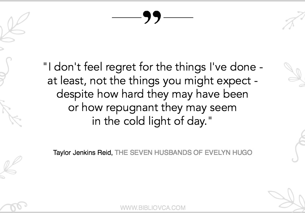 Evelyn Hugo je žena koju nije ni sram ni strah svojih mračnih emocija; ona je u savršenom suživotu sa svakim aspektom svoje psihologije i svoje biologije; netko koga je nemoguće posramiti, netko tko se nikada neće ispričati za ono što jest. Ona je žena koja je prije svega samoj sebi najveći savjeznik.