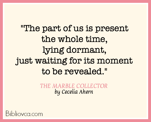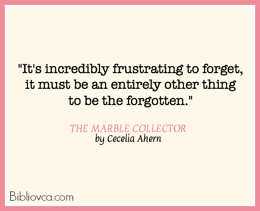 “The Marble Collector” znatno je ozbiljnijeg tona u usporedbi sa prethodnim knjigama Cecelie Ahern. Usudila bih se reći da se u napisanome osjeti njezina zrelost i kao žene i kao spisateljice. Oni koji su je već voljeli, dobit će u ovoj knjizi od Cecelie nešto barem tri puta bolje od onoga što su do sada čitali, a oni koji još nisu čitali ništa njezino, dobit će je priliku upoznati u njezinom najboljem izdanju.