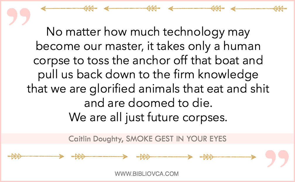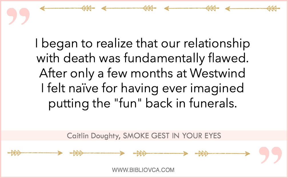Draga čitateljice ili čitatelju, mislim da neću puno pogriješiti kada bih rekla da si, kliknuvši na ovaj blog-post, htjela ili htio saznati malo više o smrti i pogrebničkoj industriji danas. Ako ništa drugo, već sada možeš odlučiti je li ovaj tekst – i ova knjiga – nešto za tebe ili nije. Autorica Caitlin Doughty ju je i napisala kako bi nam ukazala na suvremeni stav prema smrti i smrtnosti i na potrebu da ga, za naše dobro, promijenimo.