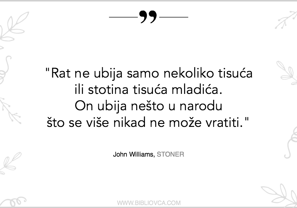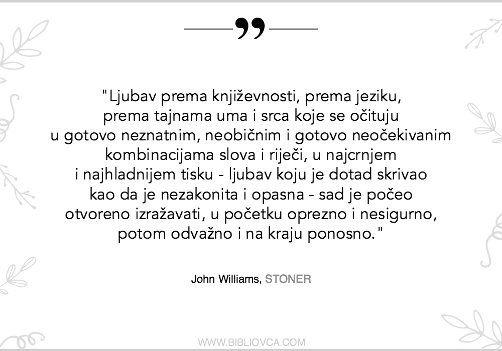 William Stoner je sazdan od snova, nada i spoznaja koje prepoznajemo u otkucajima vlastitog srca – i zbog toga nas osvaja.