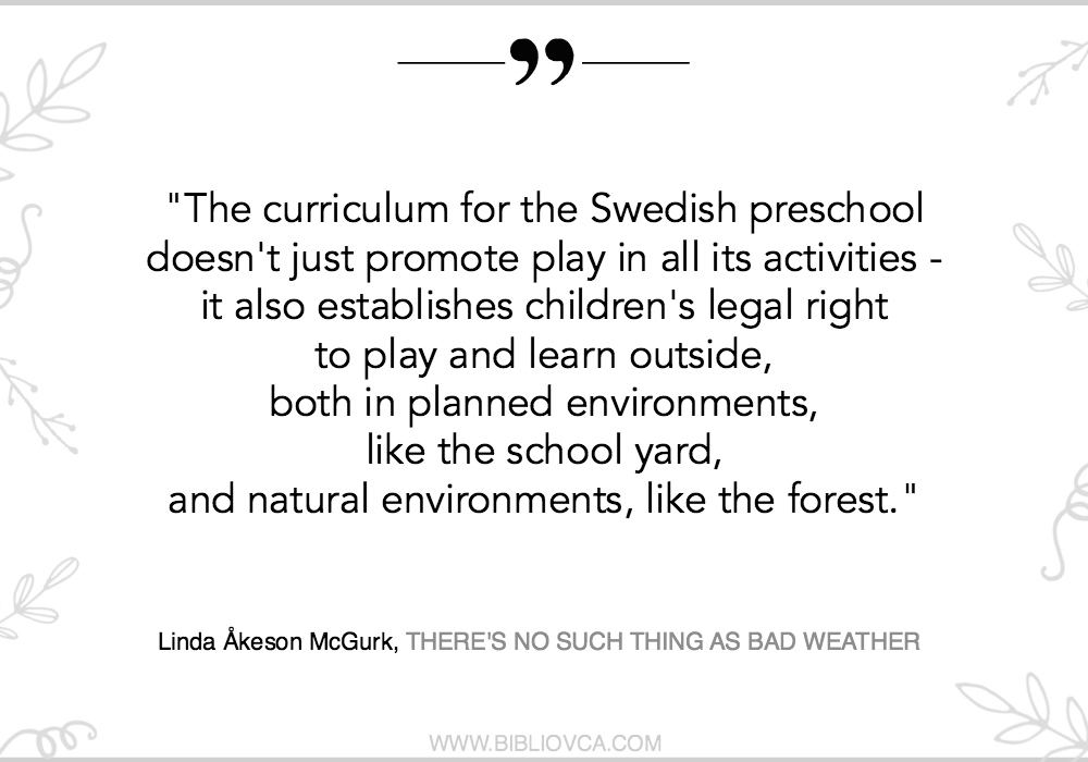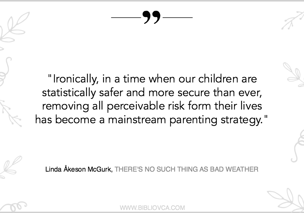 Knjiga “There’s No Such Thing As Bad Weather” rezultat je autoričinog boravka u rodnoj Švedskoj. U njoj nam opisuje svoje vlastito istraživanje ove složene teme: odrastaju li djeca drugačije u SAD-u i Europi, zbog čega je to tako, jesu li samo roditelji krivi što djeca danas odrastaju odsjećena od prirode ili čak država i zakoni uskraćuju čovjeku njegovo pravo na prirodu?