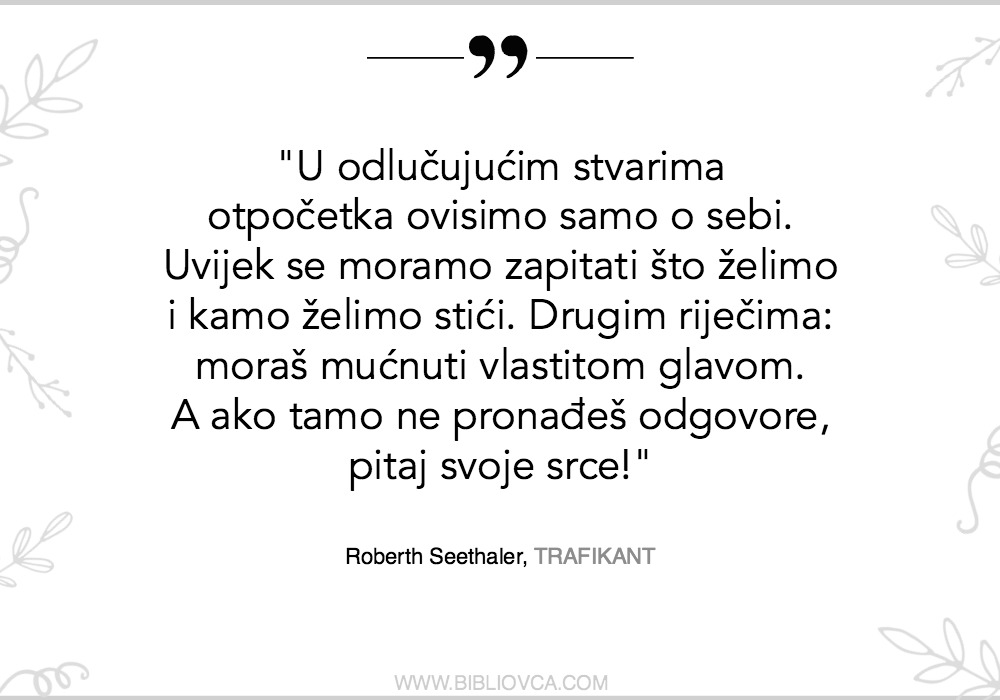Najveće iznenađenje ove knjige bilo mi je Seethalerovo ugodno, nepretenciozno, pristupačno pripovijedanje; ozbiljnost bez uobičajene patetike koja redovito prati temu Drugog svjetskog rata.